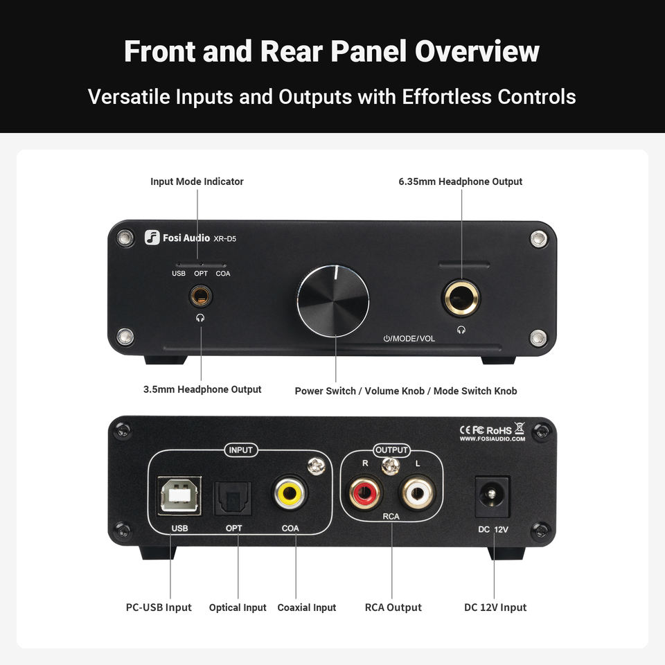 Fosi Audio XR-D5 Mini USB DAC AMP ESS9018K2M décodeur amplificateur de casque pour bureau alimenté/haut-parleurs actifs/amplificateur