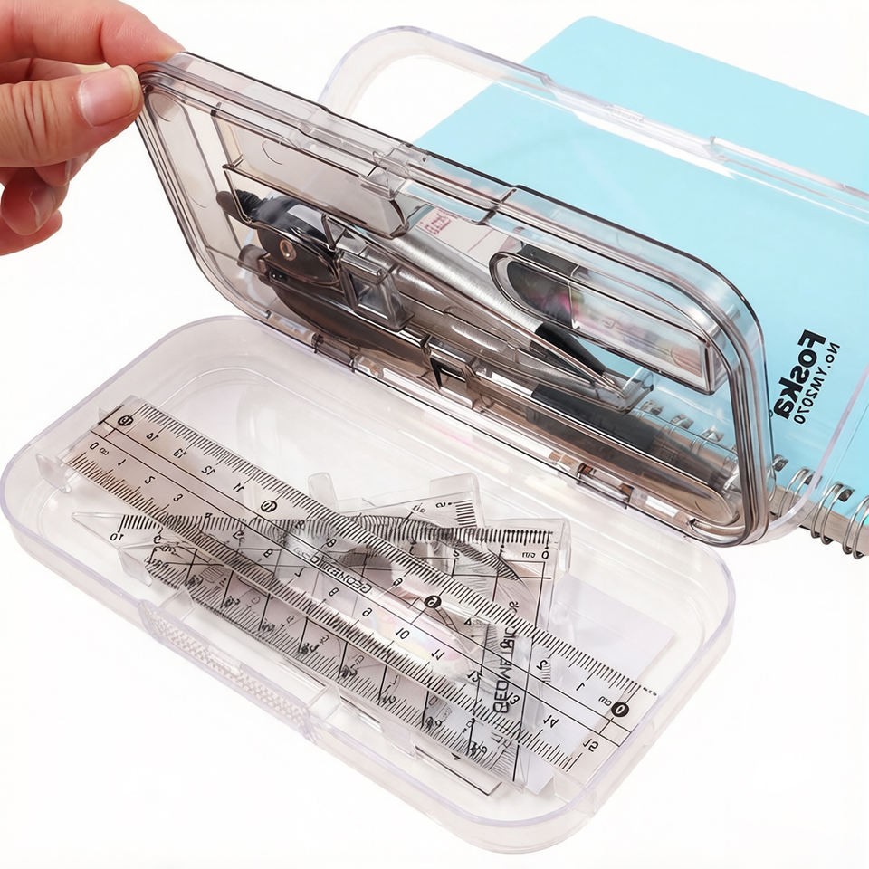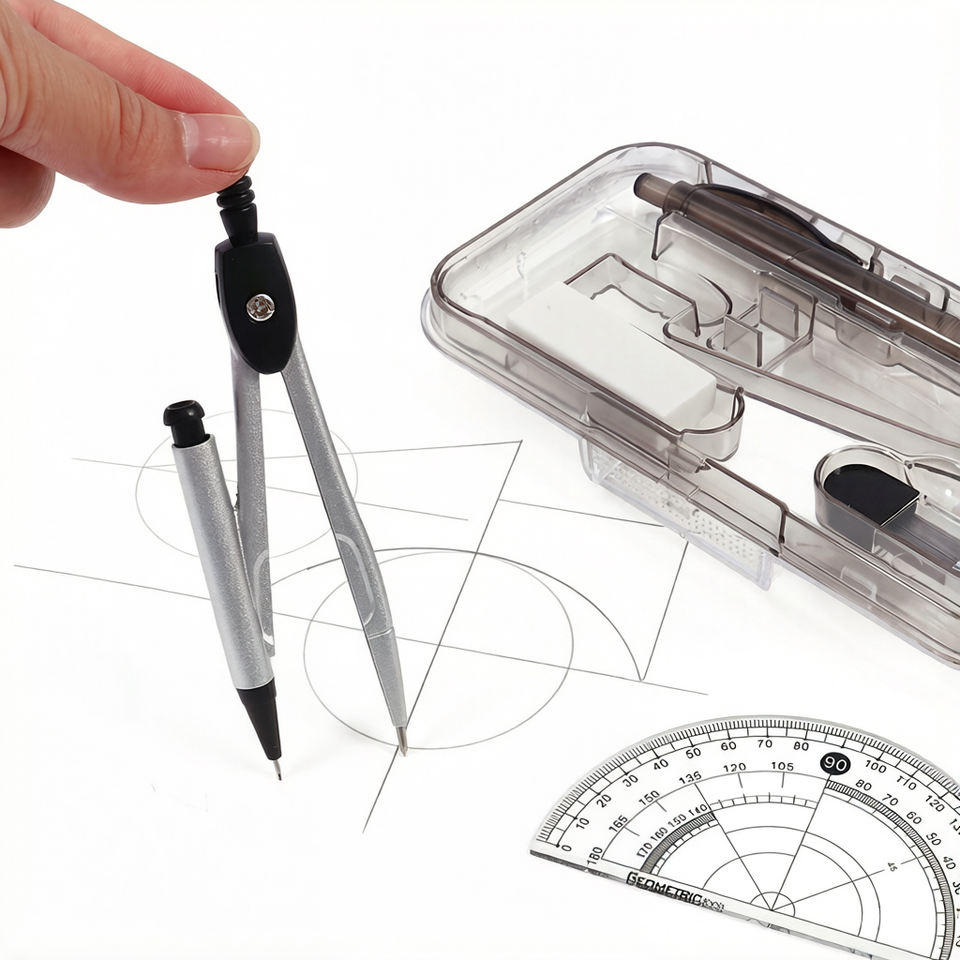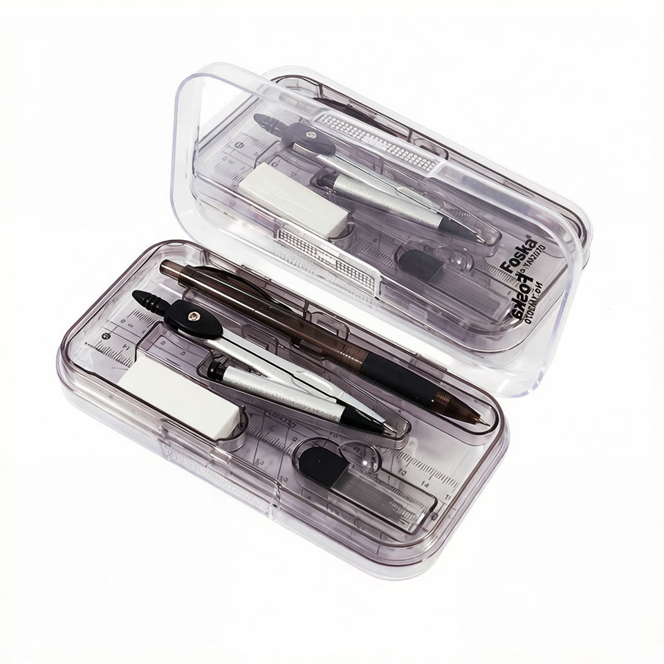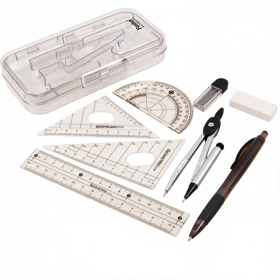 Ensemble de géométrie Foska gris, 8 pièces, facile à transporter et à ranger, avec règle, rapporteur, compas, crayon mécanique et gomme