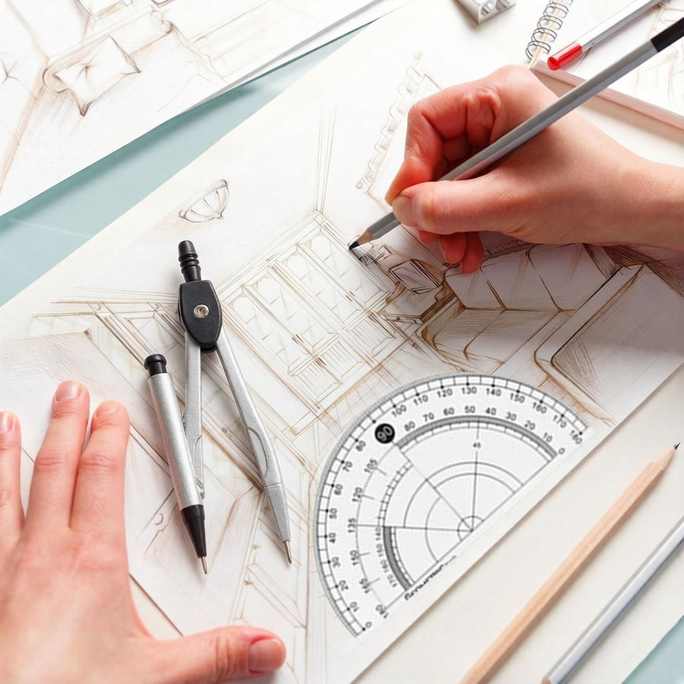 Étudiant s'attaquant aux devoirs de géométrie