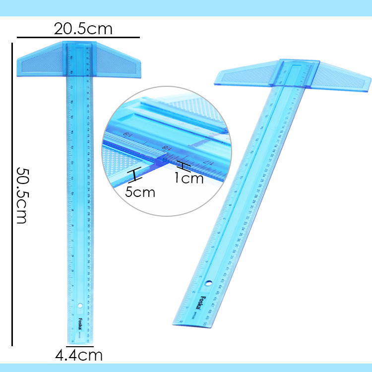 Règle en T en plastique transparente Foska de 20 pouces avec mesures en pouces et en centimètres pour les architectes, les ingénieurs et les artistes