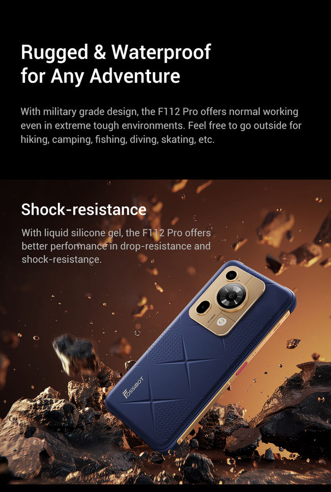 Smartphone phare antichoc Fossibot F112Pro, téléphone portable robuste 5G CDMA, 8 Go + 256 Go, appareil photo beauté 50 MP, téléphone Android