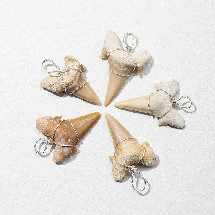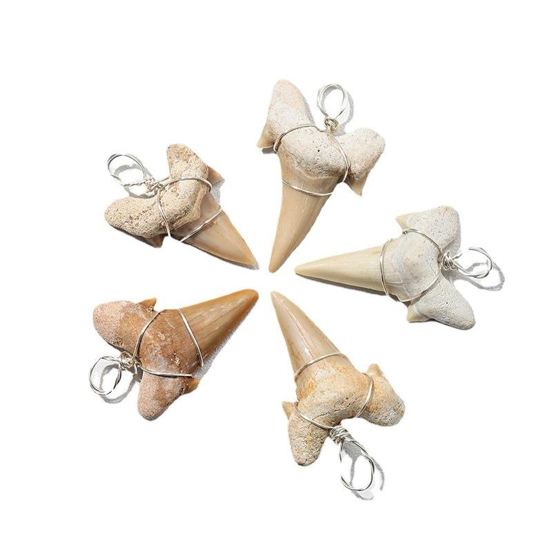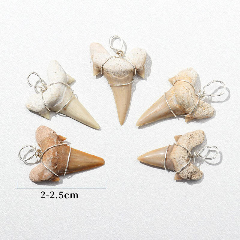Dents fossilisées fil d'argent enveloppé fossiles dents collier pendentifs vrais fossiles préhistoriques accessoires de bijoux aléatoires