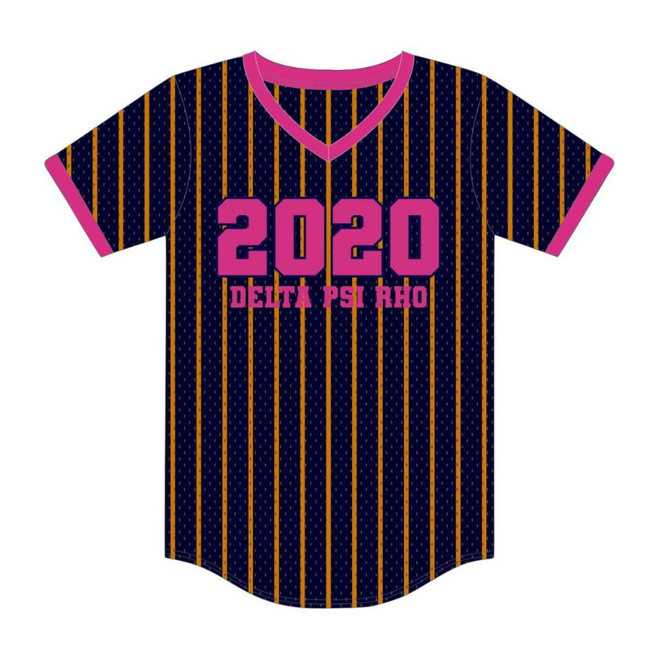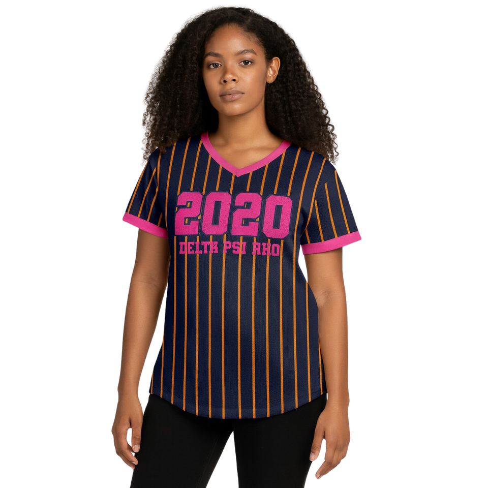 Année de fondation 2020 Delta Psi Rho Sorority Navy Pinstripe Pullover Baseball Jersey 100 Polyester Mesh V Neck Knit Rib T Shirt