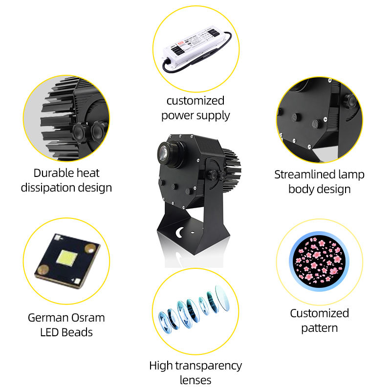 Four Figure Rotating Advertising Projector Light Outdoor IP65 Waterproof Ground Signboard Custom Gobo logo Projector
