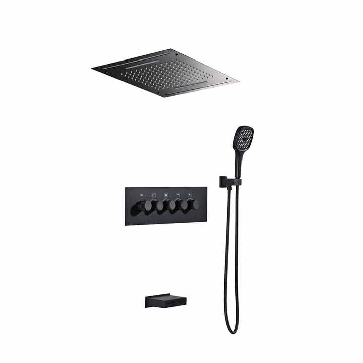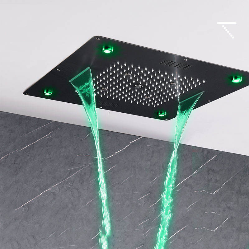 Pommeau de douche à quatre fonctions LED, musique, pluie monté au plafond, cascade, mitigeur thermostatique, ensemble de douche noir mat