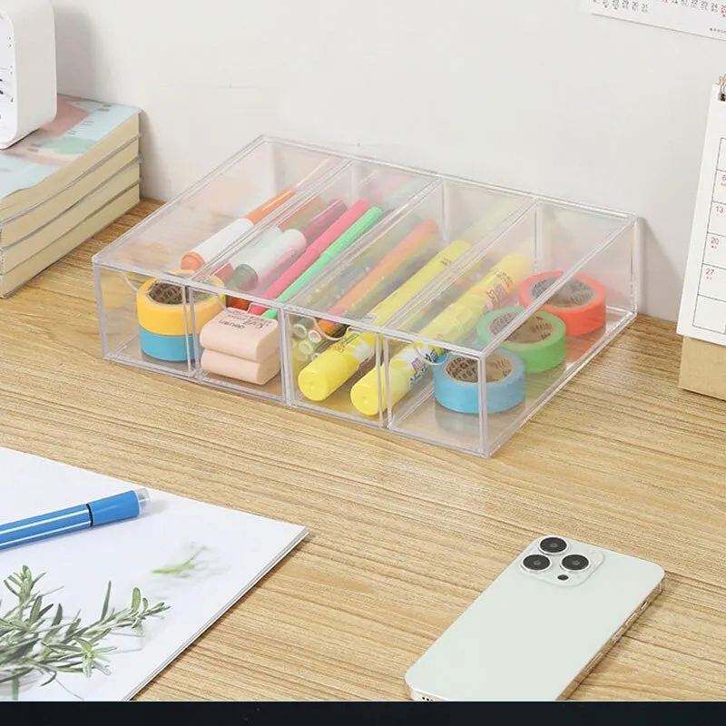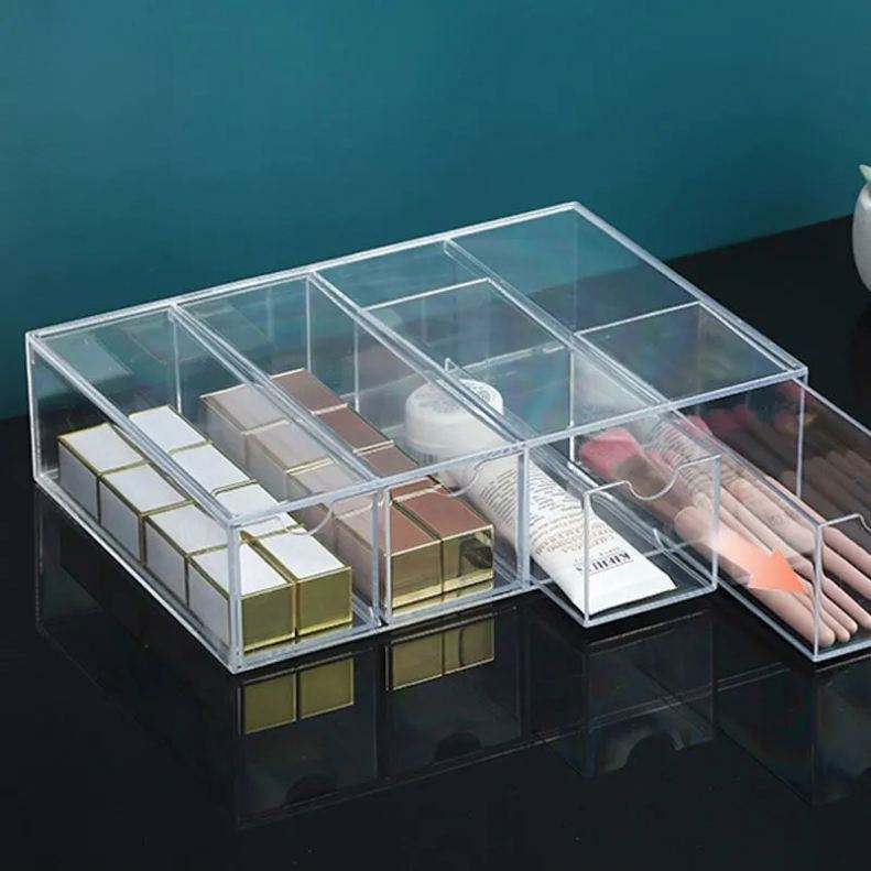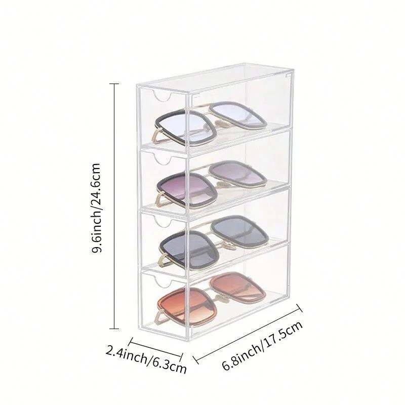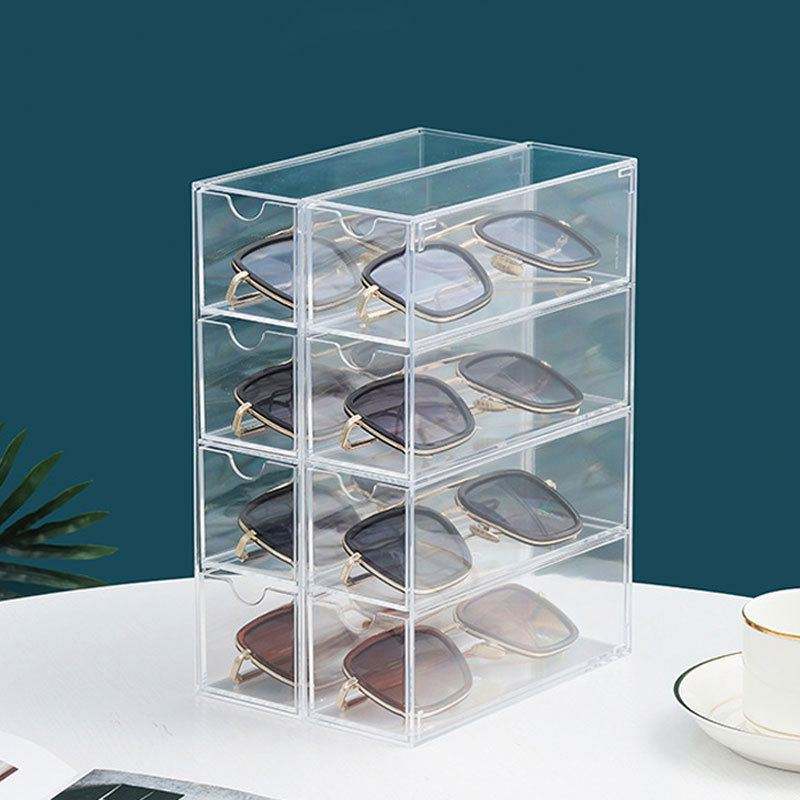 Boîte de rangement de bureau à quatre niveaux, anti-poussière, style tiroir, pour lunettes de soleil, étui à lunettes en acrylique