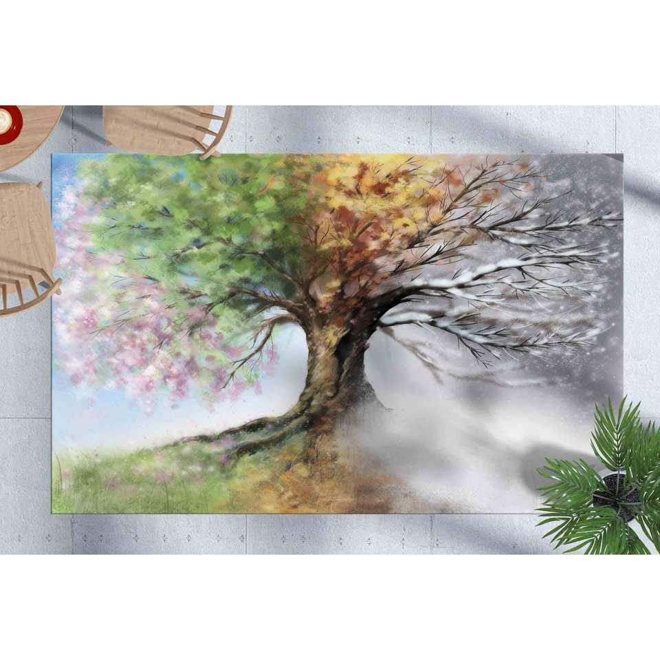 Tapis imprimé arbres des quatre saisons - Moderne, coloré, design rustique, tapis en chenille