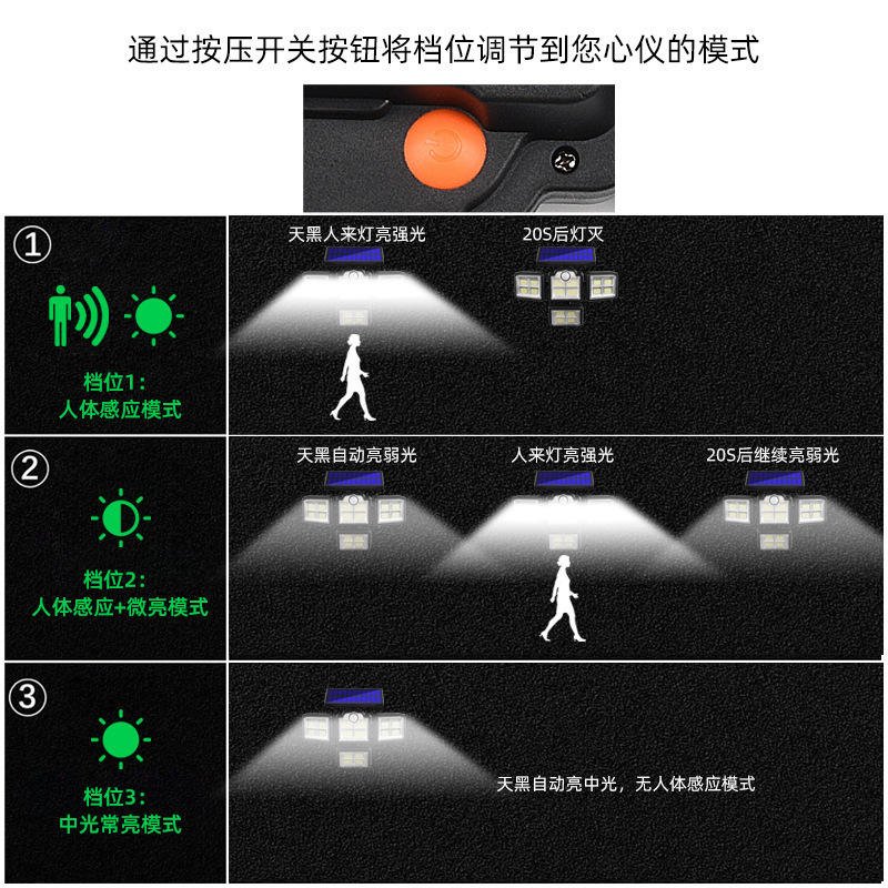 Lampe murale rotative à quatre têtes à énergie solaire intégrée 198COB