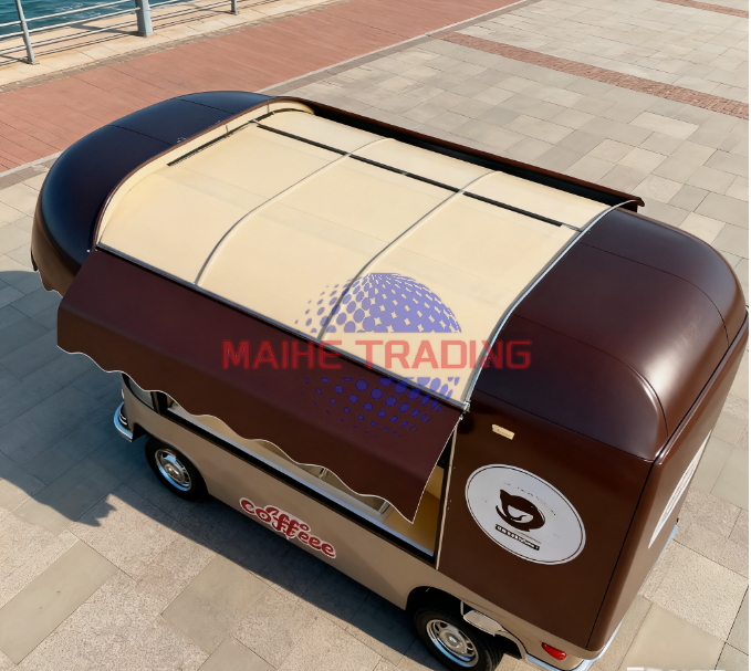 Remorque alimentaire électrique à quatre roues avec cadre en aluminium, fibre de verre et acier inoxydable pour les réunions entre anciens amis