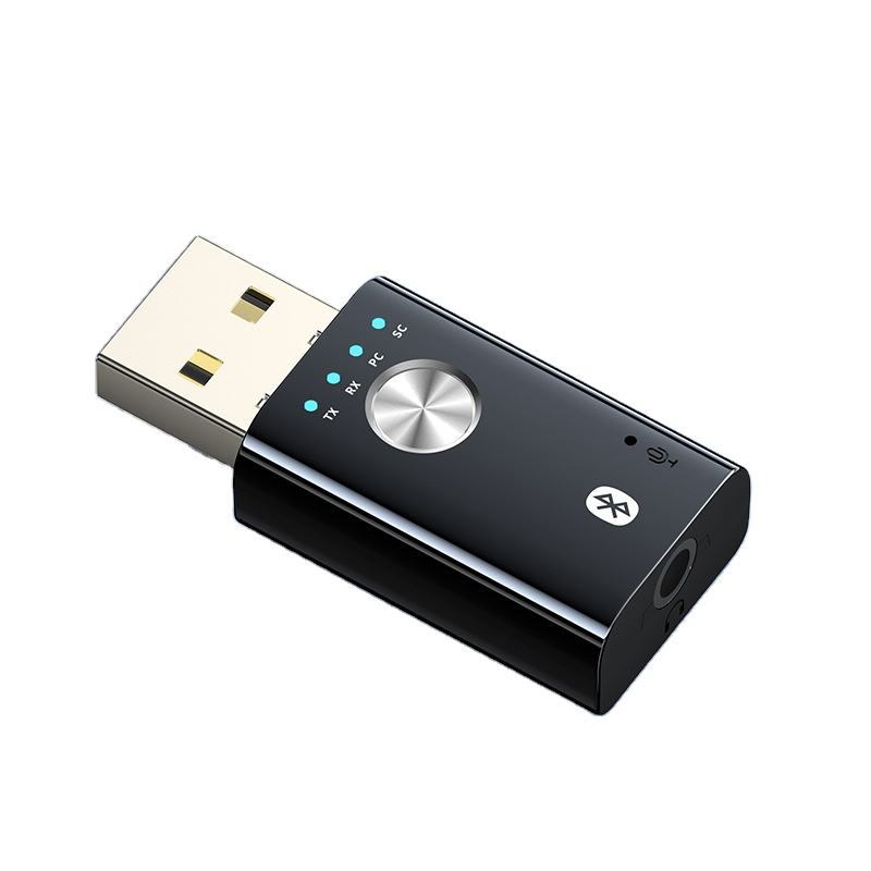 Récepteur Blue-tooth USB quatre en un Adaptateur audio Blue-tooth 5.1 Transmetteur PC d'ordinateur connecté à une carte son externe