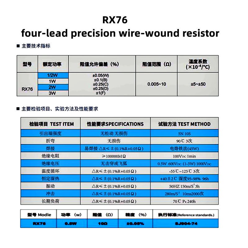 Résistance de précision standard à quatre fils, à basse température, fil dénudé, enroulé, échantillonnage U, 0,5W 1W 3W R001 à 2R RX76