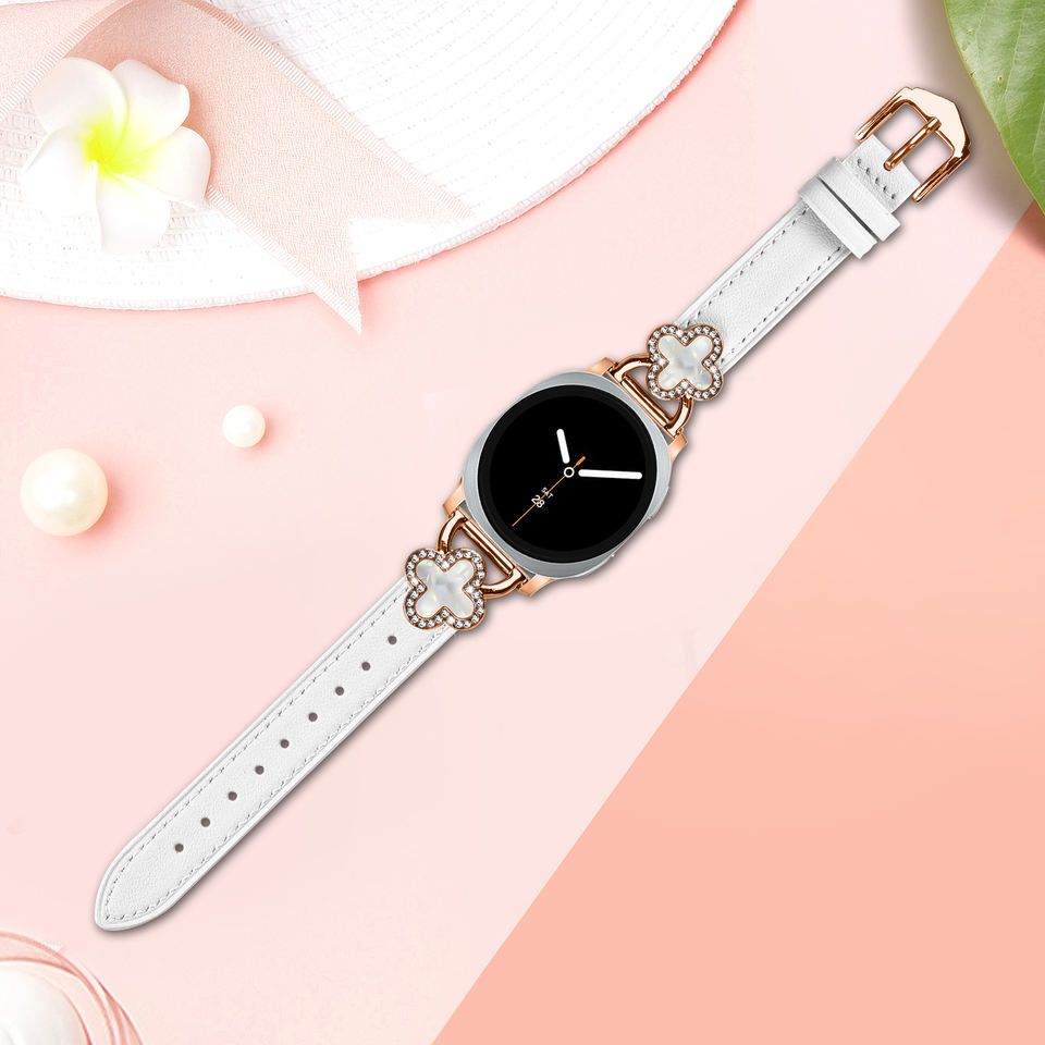 Four-leaf Style Adapter Pointed Tail 40/44mm Genuine Leather Watch Band for Samsung Watch 8 Strap for Women's Smartwatch