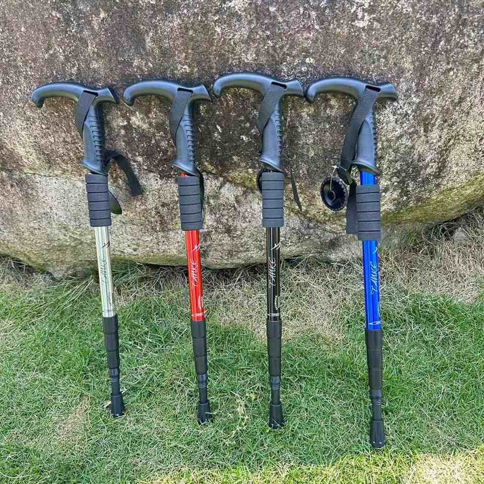 Canne de trekking à poignée en T à quatre sections Canne de voyage en plein air Poteau d'escalade en alliage d'aluminium Bâton de randonnée télescopique