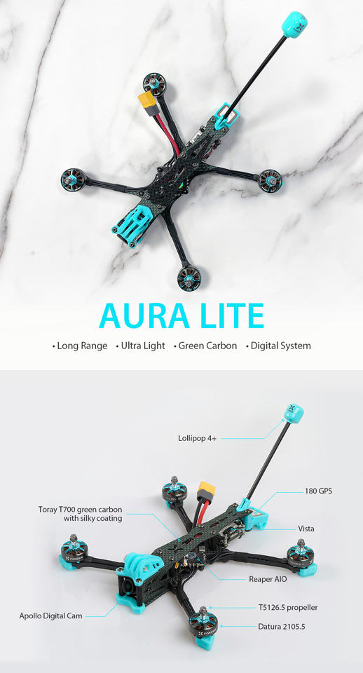 Foxeer 5" Aura Lite T700 RTF Vista LR & Freestyle HD Digital Drone Reaper 45A AIO Datura 2105.5 Apollo Digital Cam Vista Digital
