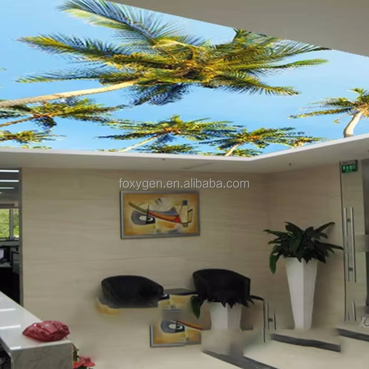 Foxygen Personnalisé Salon Décoration Intérieure Plafond Led Rétro-Éclairé Solf Celling Film Détails Pvc Film Décoration Plafond Carreaux