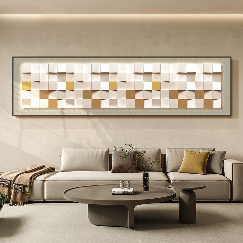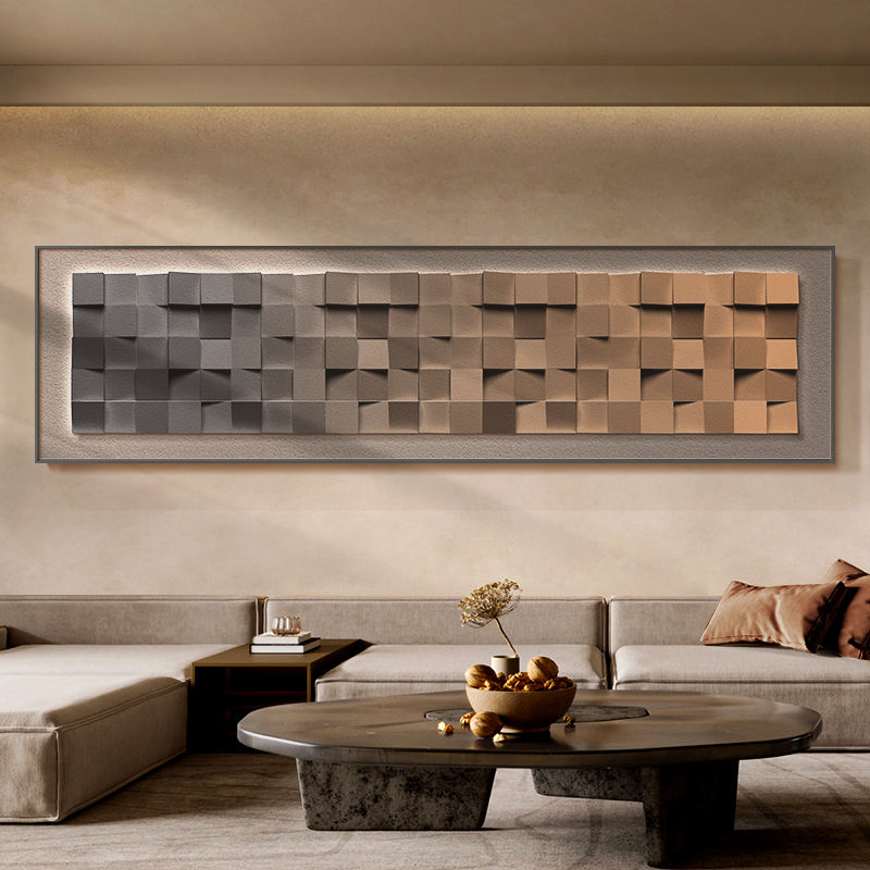 Cadre Décoration Maison Oeuvre Salon 3D Bleu Abstrait Carré Géométrique Stéréoscopique Murale Cristal Porcelaine Peinture