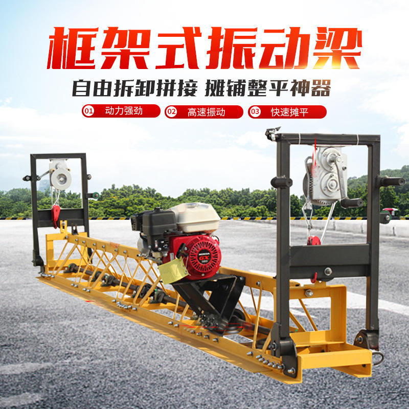 Machine de nivellement de chaussée en béton à poutre vibrante de type cadre, avec roue manuelle rétractable, à essence