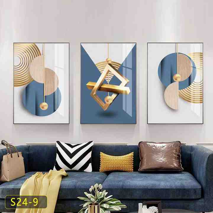 Tableaux et Affiches Muraux Cercles Géométriques Abstraits de Luxe Encadrés, Peinture en Porcelaine Cristal pour Décoration de Salon