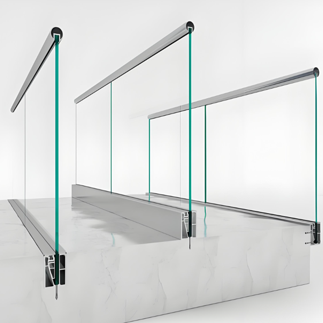Système de garde-corps en verre trempé sans cadre avec fixation au sol en aluminium