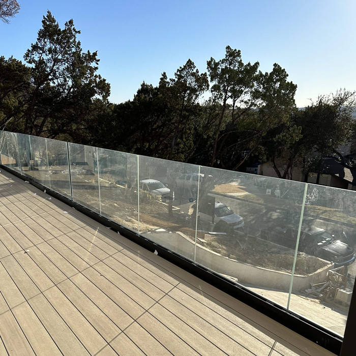 Système de balustrade en verre trempé sans cadre avec profilé en U en aluminium, fixation au sol pour clôtures de terrasses extérieures et balustrades de balcons