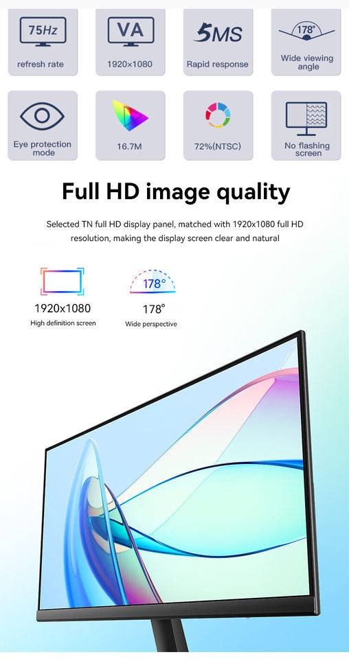 Moniteur mince sans cadre 1ms IPS PC Écran HD 21.5 pouces 60hz Ordinateur de bureau Gaming 22 pouces Moniteur de jeu
