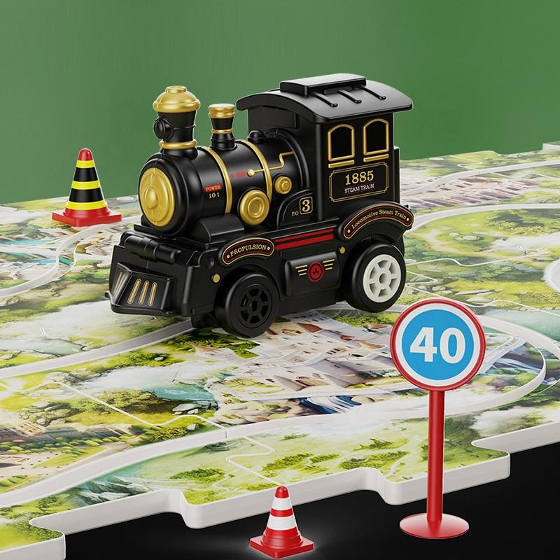 Selling point: puzzle track car play set:The toy vehicle automatically drives smoothly along the grooved track