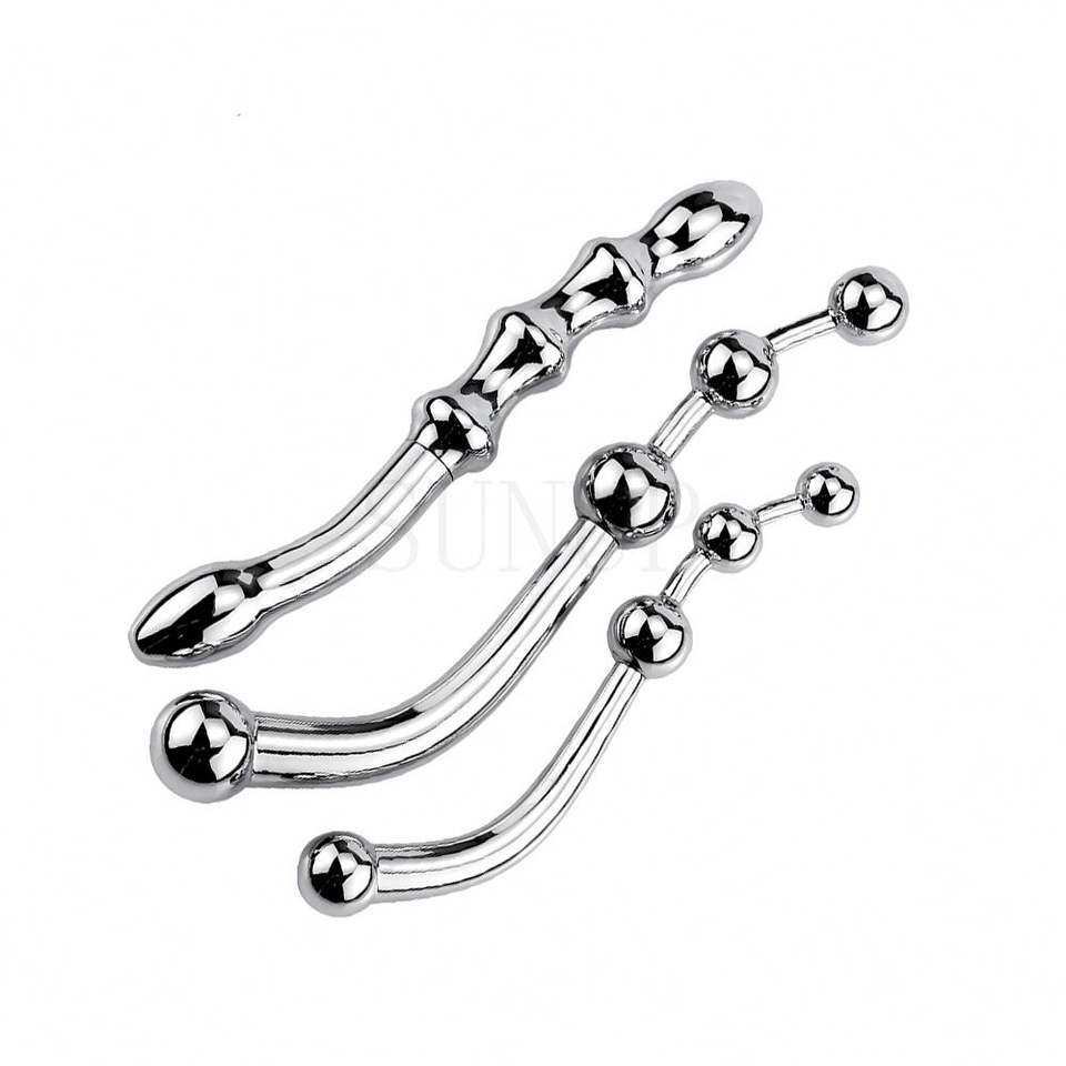 Boîte personnalisée gratuite-Femme Lady perles anales hommes masseur de prostate métal Double tête deux extrémités perles anales godemichet Anal