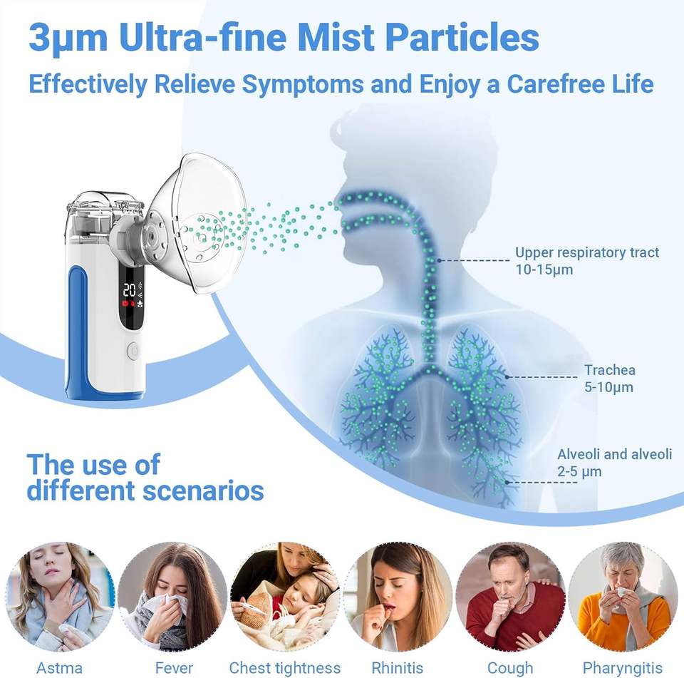 Nébuliseurs numériques personnalisés gratuits, rechargeables, portables, à main, pour l'asthme, la toux, en maille électrique, nébuliseur portable