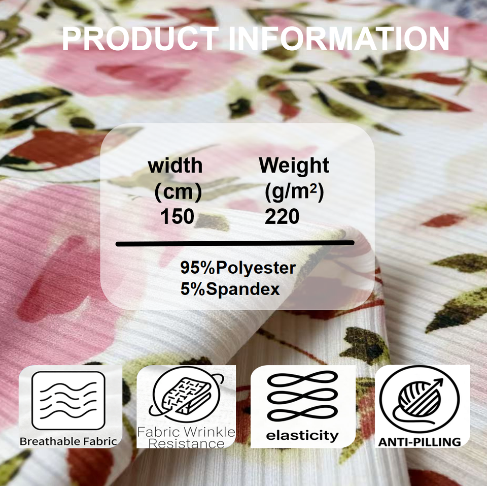 Free Custom Eco-Friendly Soft Stretch 220gsm Knitted Rib Printed Stamen Pattern Fabric for Girls & Boys Clothing