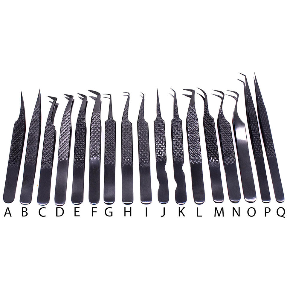 Extensions de cils en acier inoxydable 45 75 90 degrés Logo personnalisé gratuit Pince à épiler Embouts en fibre Volume incurvé pince à épiler couleur plasma noir
