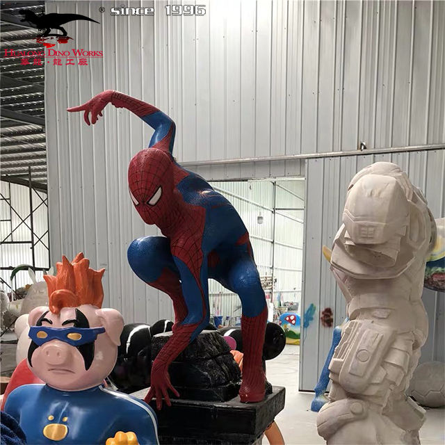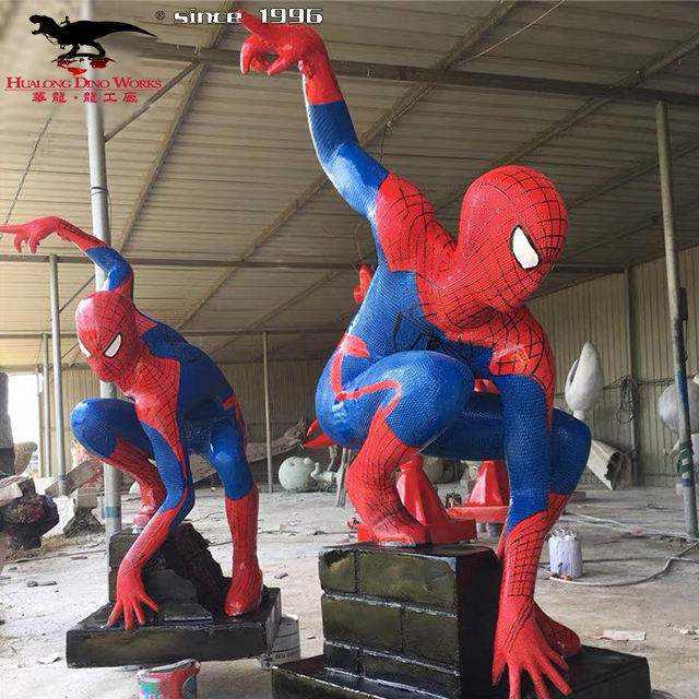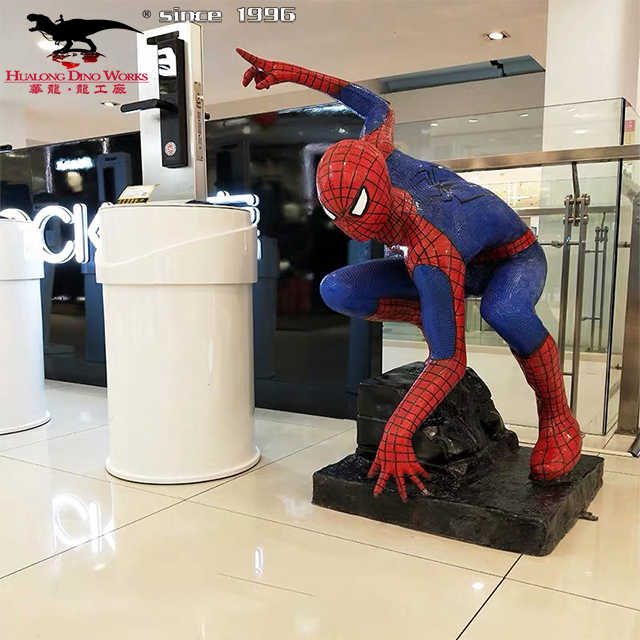 Statues de Spider-Man grandeur nature en fibre de verre personnalisées gratuites pour les centres commerciaux et les parcs d'aventure, utilisation intérieure/extérieure