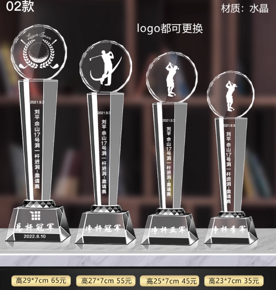 Trophée de golf en cristal K9 personnalisé avec gravure, gravure au laser et impression UV - Prix pour divers événements