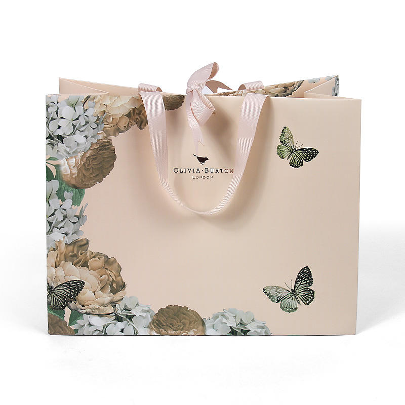 Bon marché, sac d'emballage cadeau imprimé de logo personnalisé en papier rose rose recyclé fourre-tout avec ruban de soie