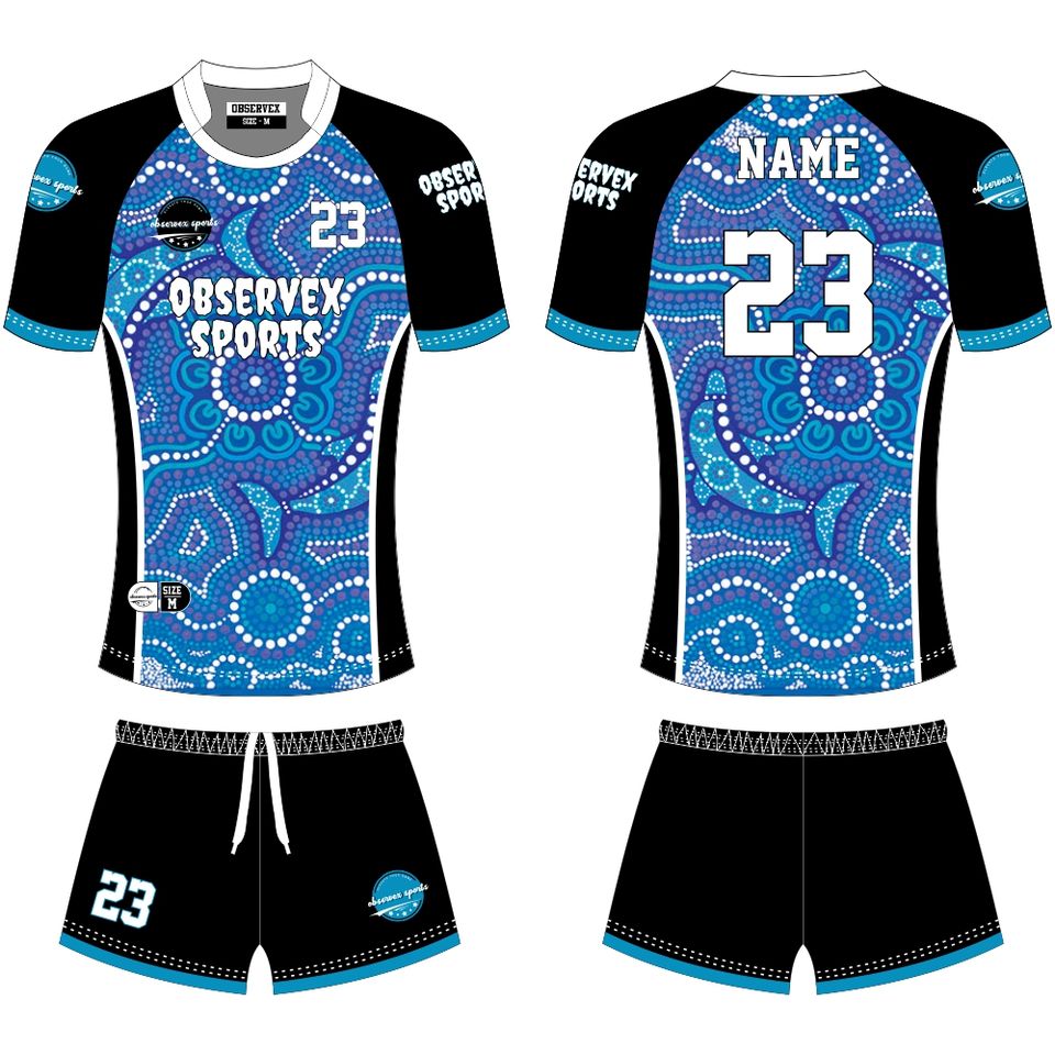 Ensemble d'entraînement de rugby personnalisé de conception libre Maillot et short sublimés respirants avec logo de rugby australien élevé