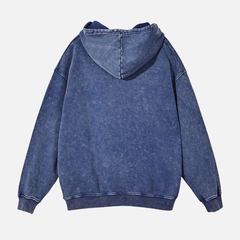 Streetwear personnalisé de conception gratuite Sweats à capuche sans ficelle délavés à l'acide Stone Wash Pull Over Hoodie
