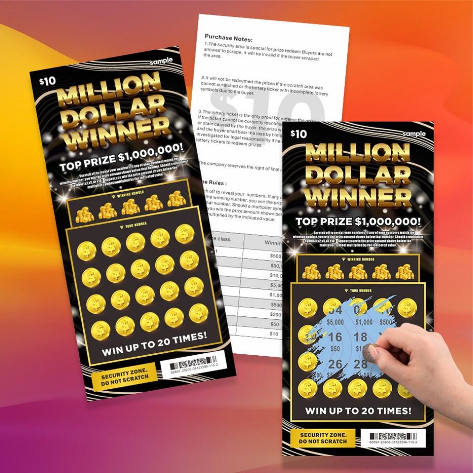Billet de loterie à gratter personnalisé avec données variables, haute sécurité et design gratuit