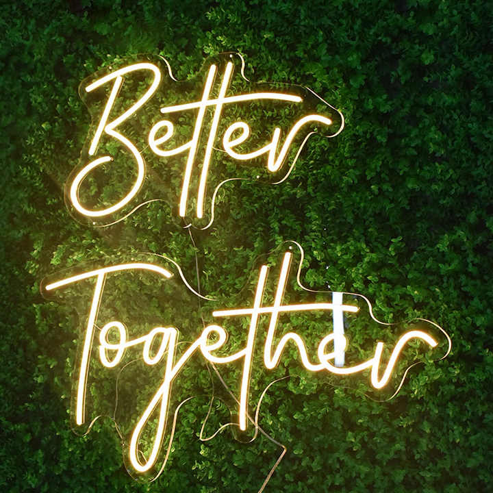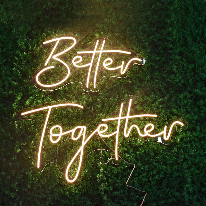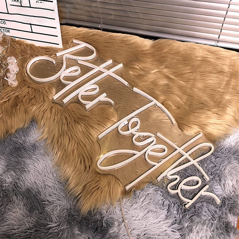 Conception libre enseignes électroniques BASSES quantité minimale de commande enseigne lumineuse Led personnalisée enseigne au néon Better Together acrylique