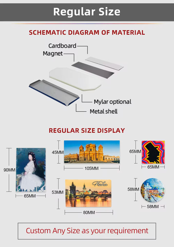 Aimants de réfrigérateur en métal à conception libre, souvenirs touristiques, plaques en étain 80*53mm 90*65mm, matière première