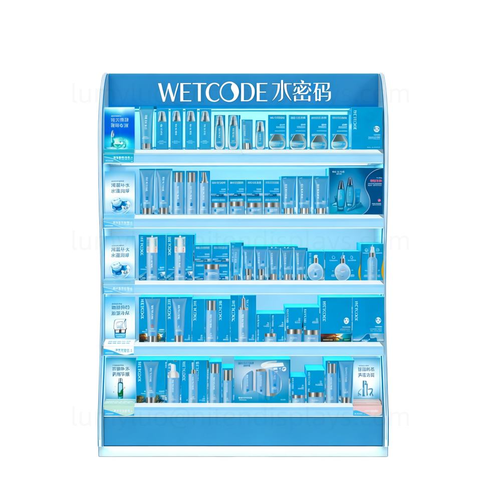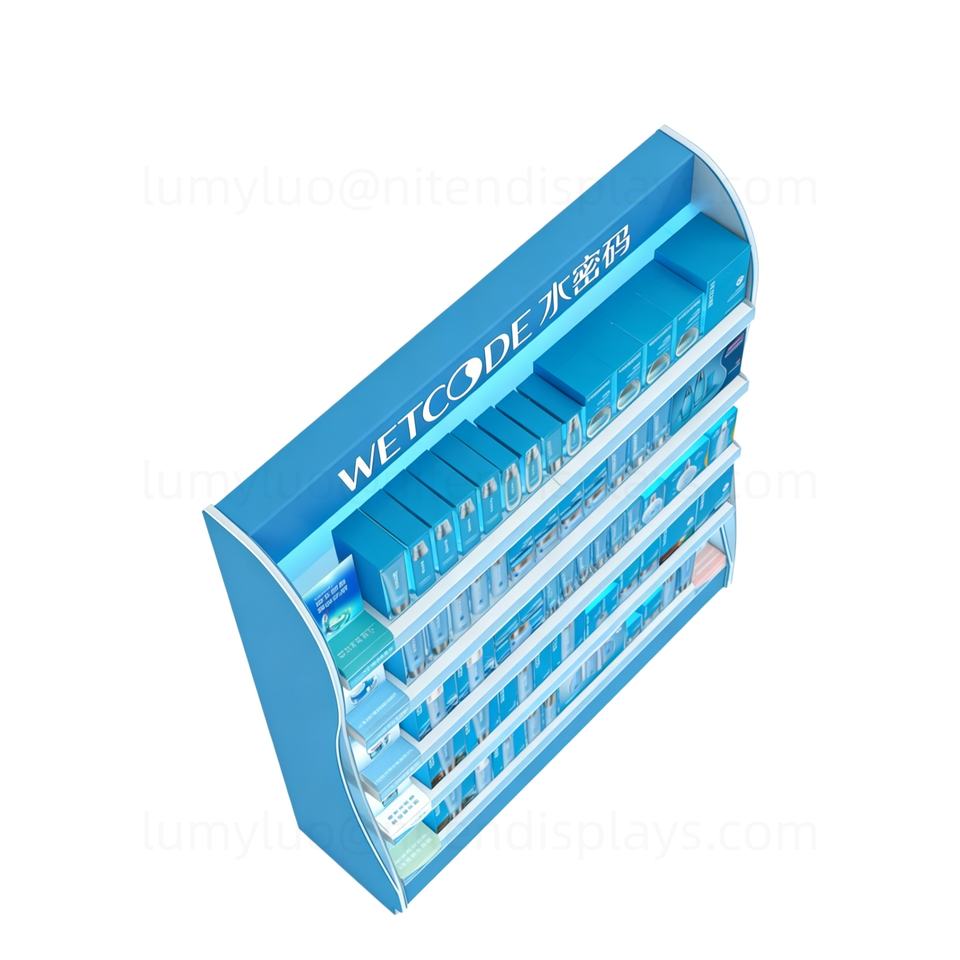 Présentoirs en bois personnalisables avec éclairage LED pour marques de soins de la peau, étagères cosmétiques sur mesure pour boutiques et magasins de détail