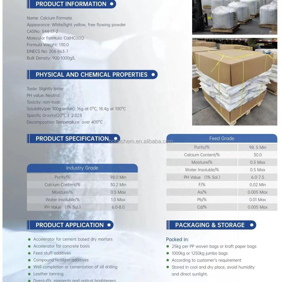 Échantillon d'usine gratuit de sel organique FORCA, poudre de formiate de calcium à 98%, accélérateur de ciment, formiate de calcium de qualité alimentaire BOTAI