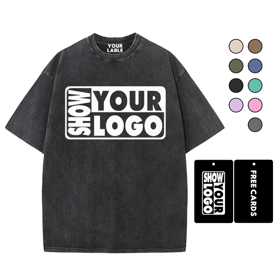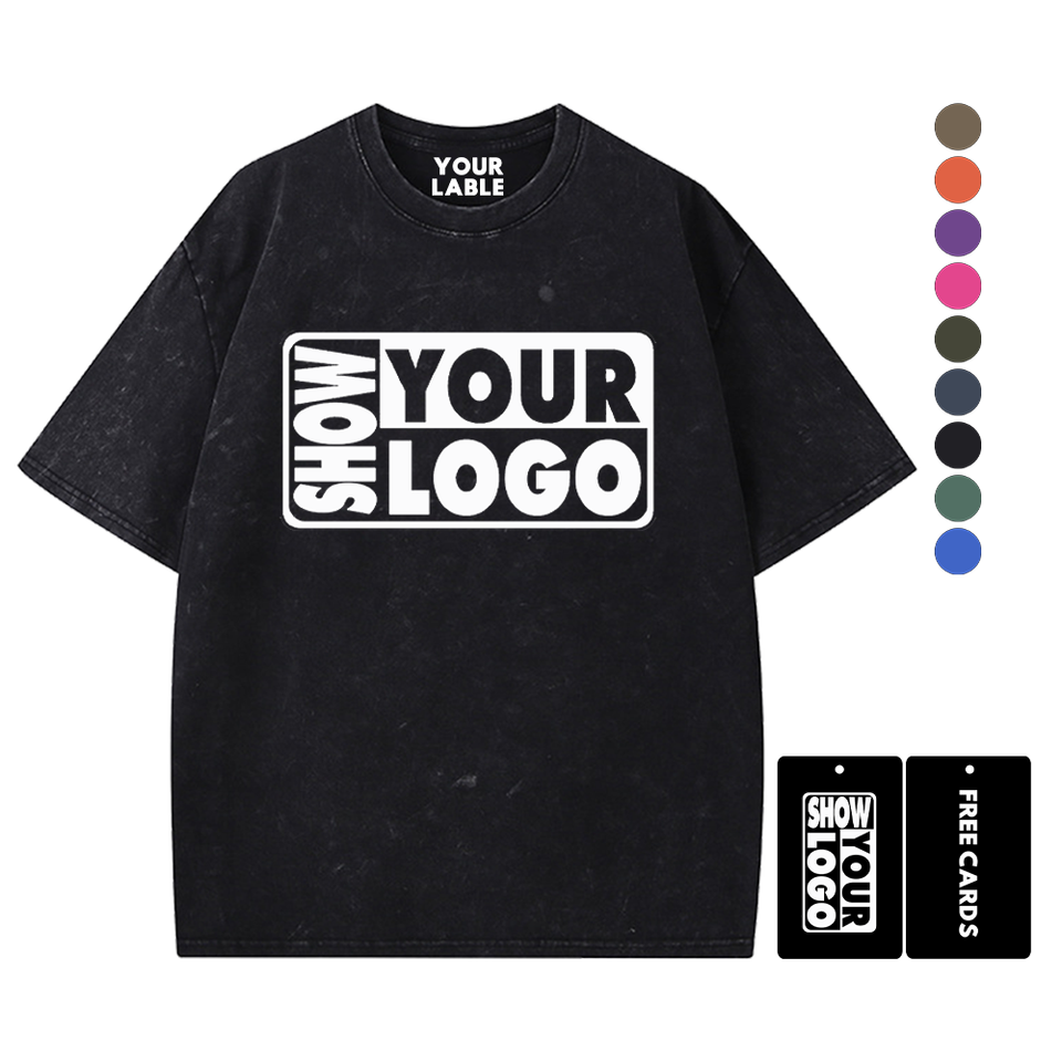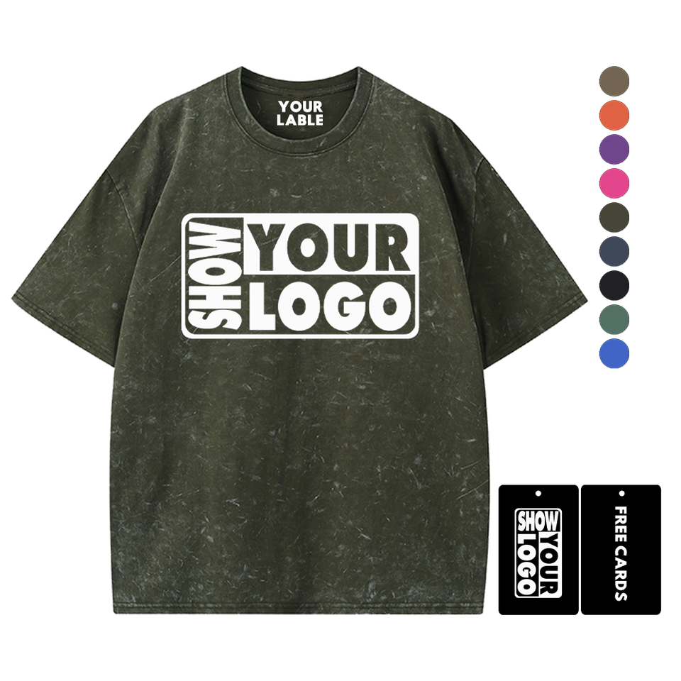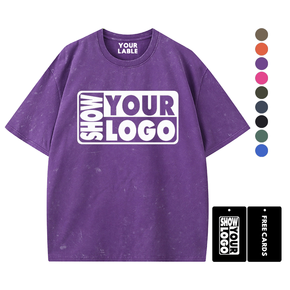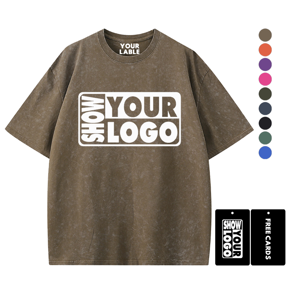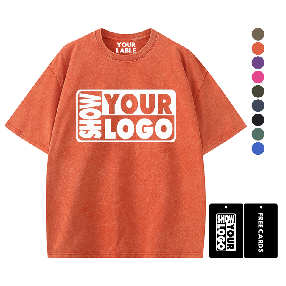 Impression Gratuite d'Étiquettes avec Votre Logo Nouveaux T-shirts en Coton 100% Lavé 340gsm à Col Rond Coupe Classique pour Hommes et Femmes Impression Personnalisée