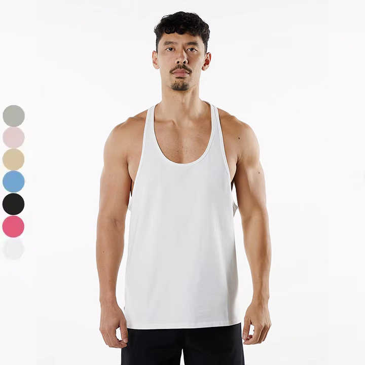 Logo gratuit hommes Racer Back Singlet Gym Top lâche sport gilet coton course vêtements de sport Fitness entraînement décontracté homme débardeurs