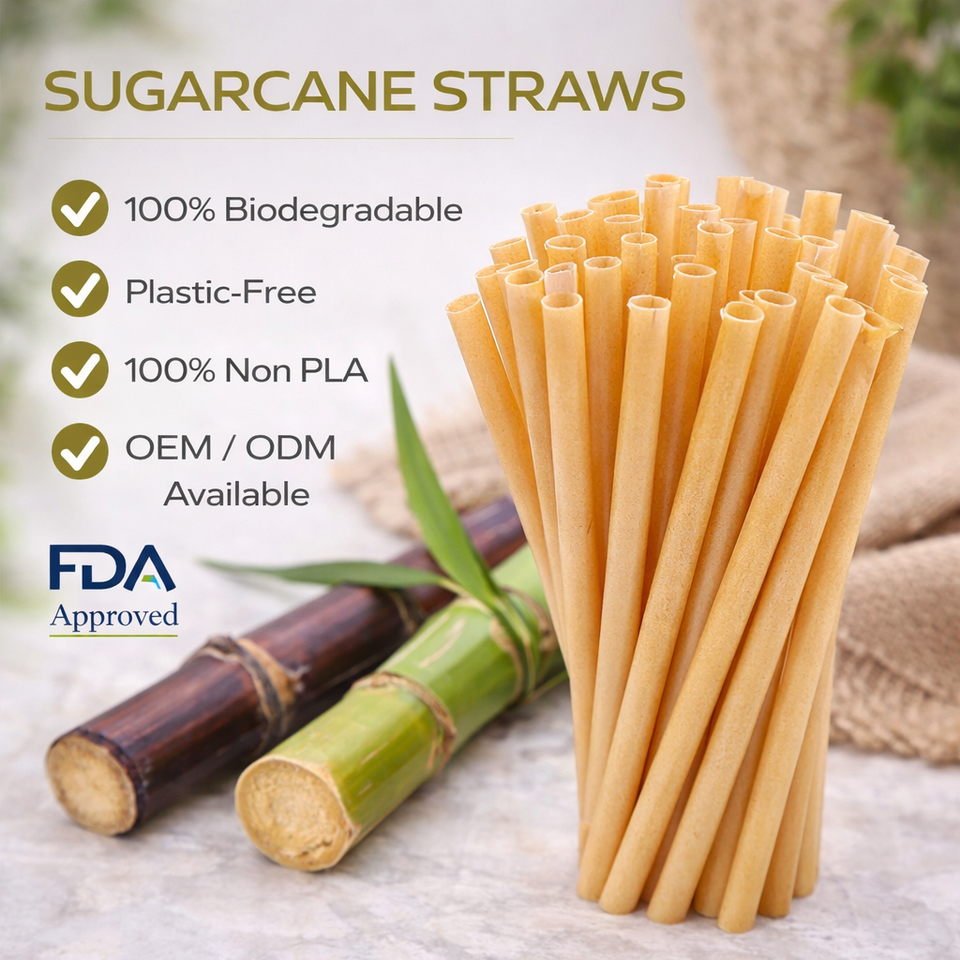 Pailles à boire biodégradables 100% naturelles en bagasse de canne à sucre pour café, jus et bubble tea