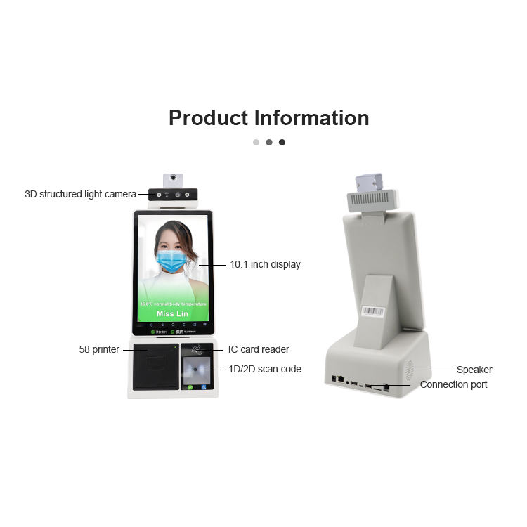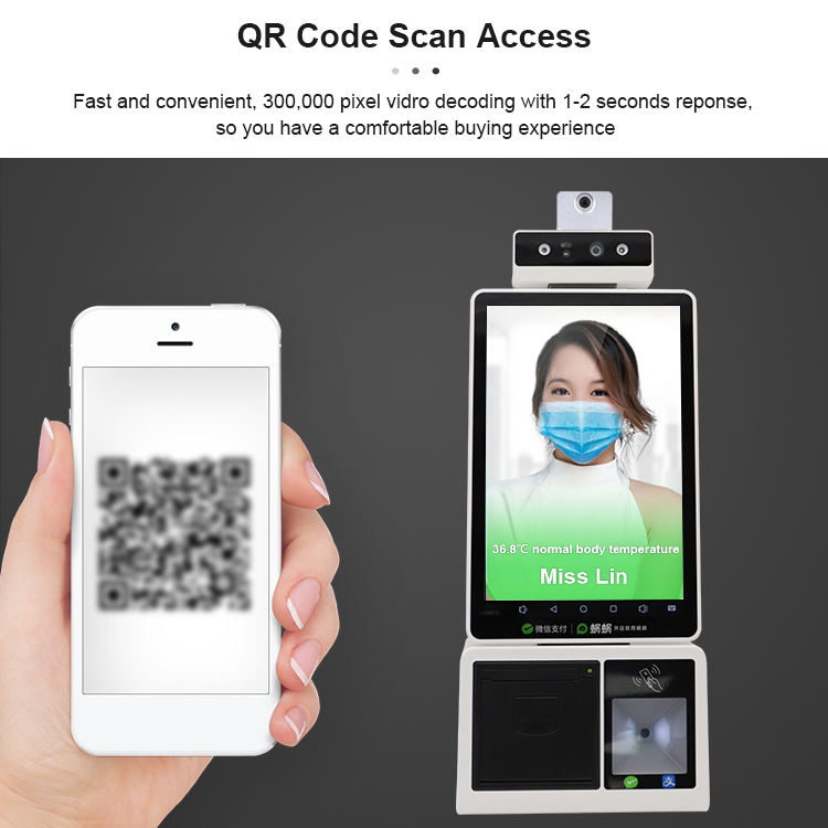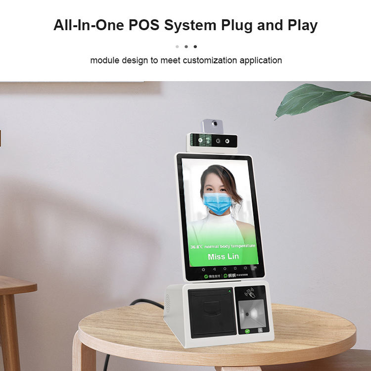 Système de point de vente tactile Android 10,1 pouces avec SDK gratuit, borne de paiement libre-service avec mesure de température et lecteur de code QR