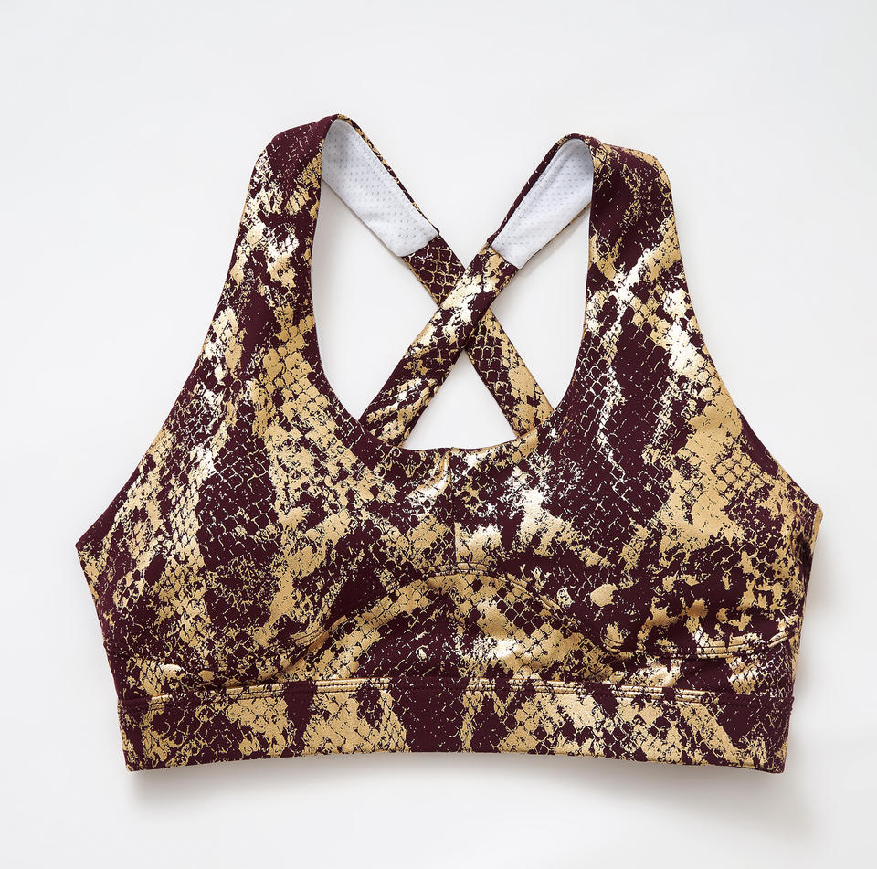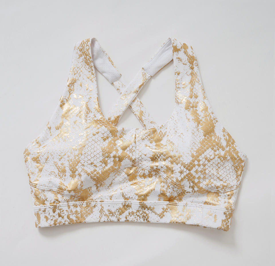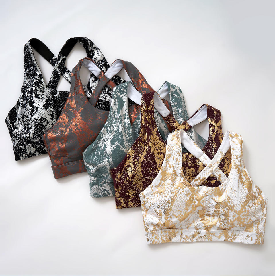 Échantillon Gratuit 2024 Soutien-gorge de Sport Imprimé Peau de Serpent Effet Bronzé pour Yoga, Fitness, Entraînement, Course et Gym