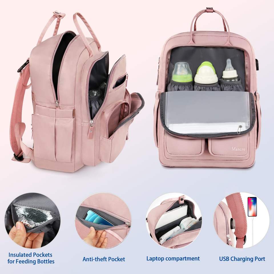 Échantillon gratuit 2025 Sac à dos de voyage multifonctionnel imperméable en néoprène, sac à dos pour maman, sac à langer, sac à langer pour bébé