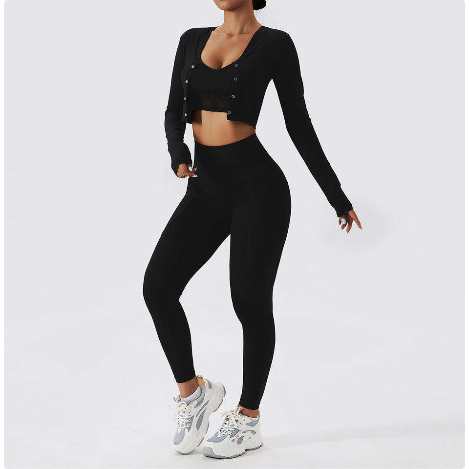 Échantillon Gratuit Ensemble 3 Pièces Vêtements de Sport Respirants Manches Longues pour Femmes Survêtement de Gymnastique Athlétique Yoga