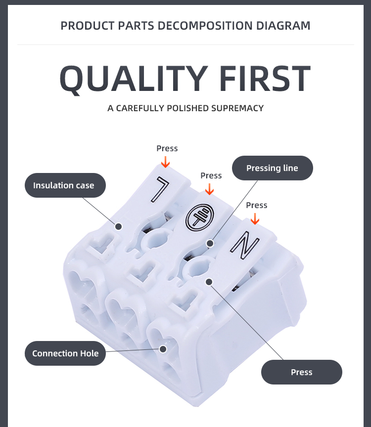 Échantillon gratuit 3 broches certifié VDE, mini section fine, connexion rapide, peut être épaissi