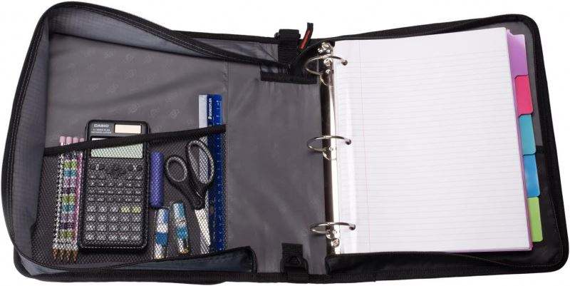 Échantillon gratuit, sac à anneaux à fermeture éclair BSCI, 2 pouces, 3 anneaux, capacité de 500 feuilles, organiseur multi-poches, classeur adapté au collège
