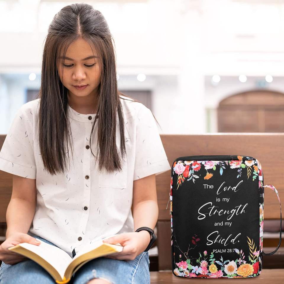 Free Sample Bible Case Leather Carrying Book Handle Zippered Pocket for Standard Size Bible and Accessories Bible Cover Case